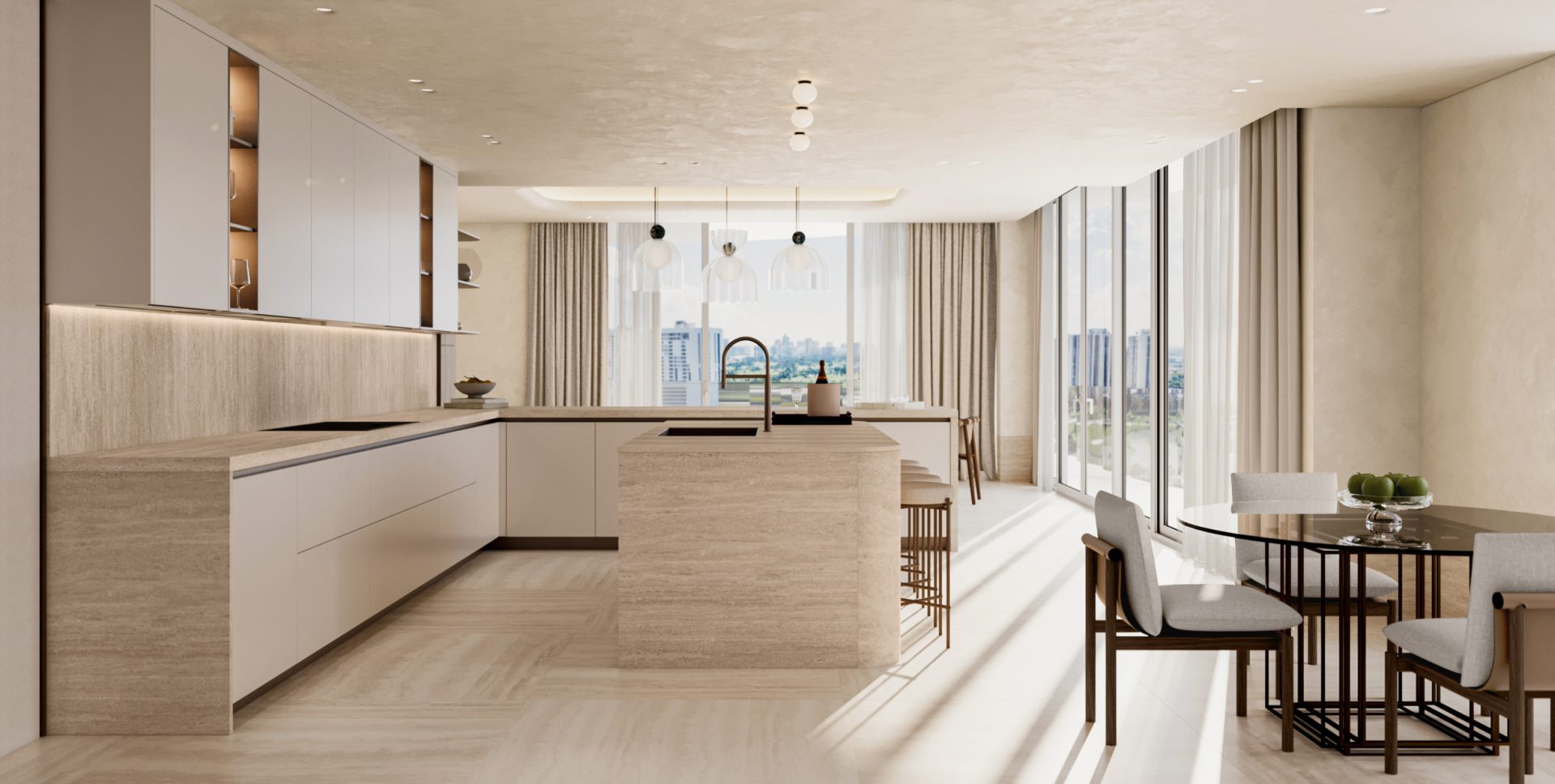 Inspired by the European boulevards and the singular architectural elements of FENDI Casa’s than three decades of style, Avenia features travertine textures, high-style amenities and a truly boutique setting in a singular location, which together are poised to transform Aventura luxury.