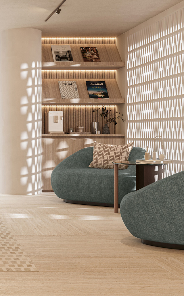 Avenia comes to life in an evocative collection of furniture, finishes, textiles and fixtures that together forge a meticulous living experience.